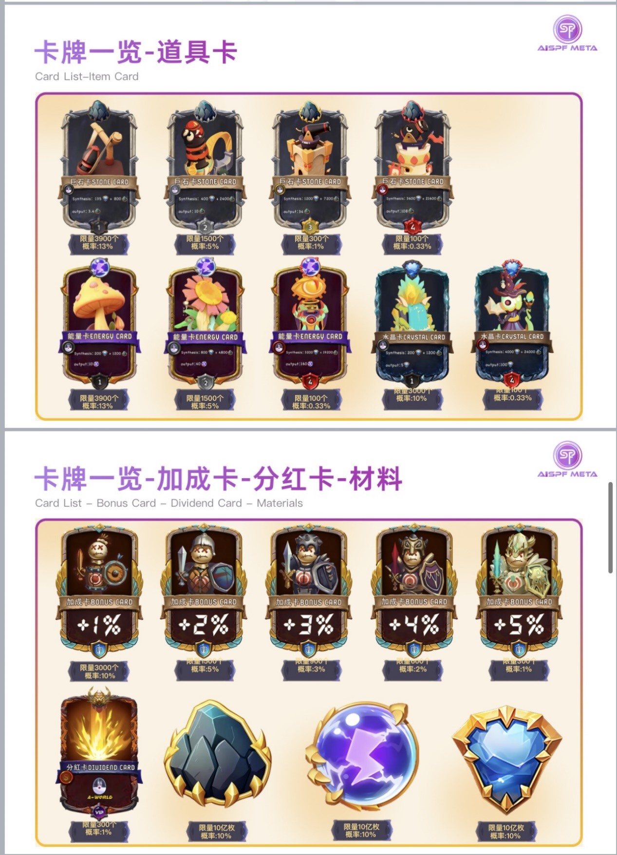 有1、4俩种级别的卡片,合成需要水晶+巨石,产出材料是水晶,每次消耗材料水晶和能量;