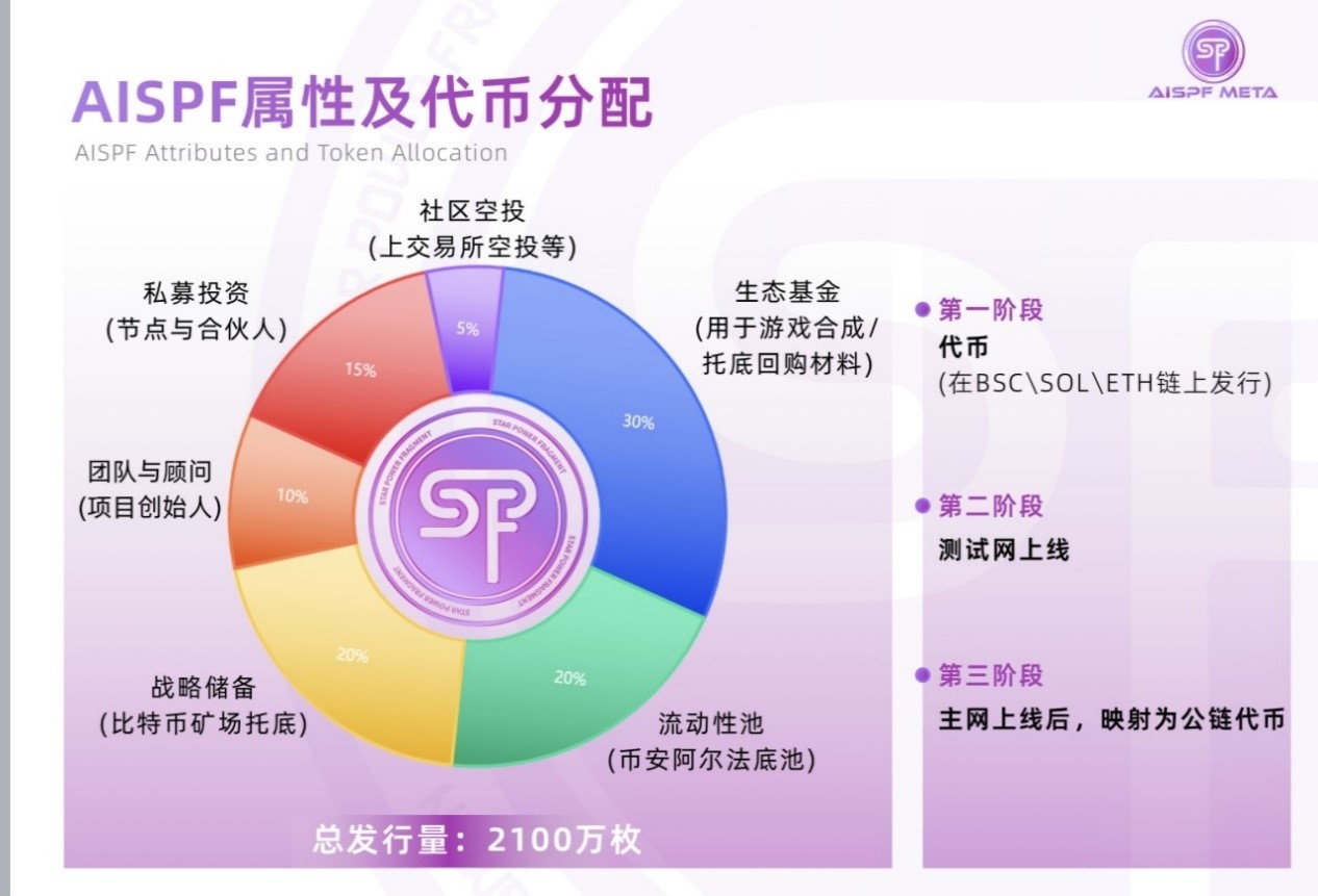 - 通缩模型+价值锚定:AISPF代币仅2100万枚,全场景销毁+AI量化回购,通缩推升价值;币股同权设计,绑定生态长期收益。